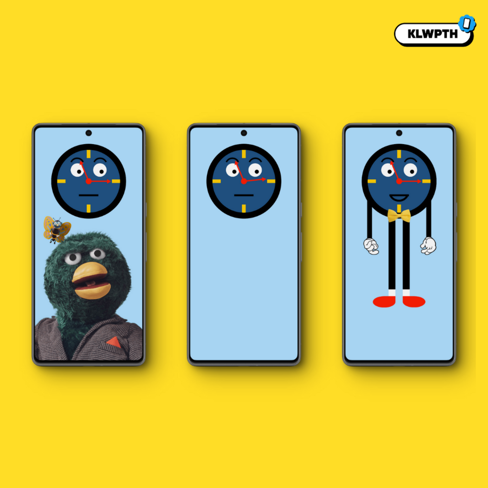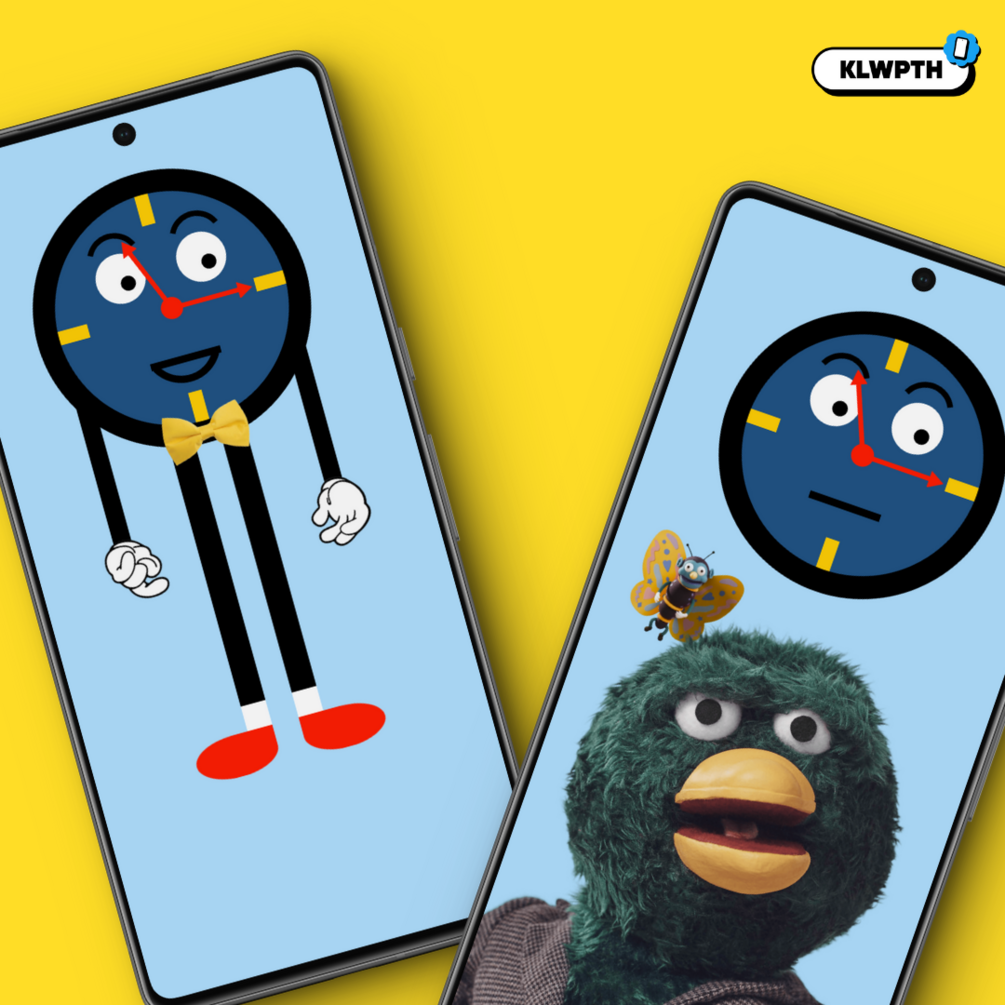This setup is also part of the KLWPTH - MEGA BUNDLEStep into the whimsical and slightly surreal world of Don't Hug Me I'm Scared with this unique phone home screen setup. At the centre of attention is Tony the Talking Clock, sporting his distinctive round face and quirky personality. Tap to see his retractable arms and legs add a playful touch to your screen, bringing a dynamic and animated element to your digital experience.