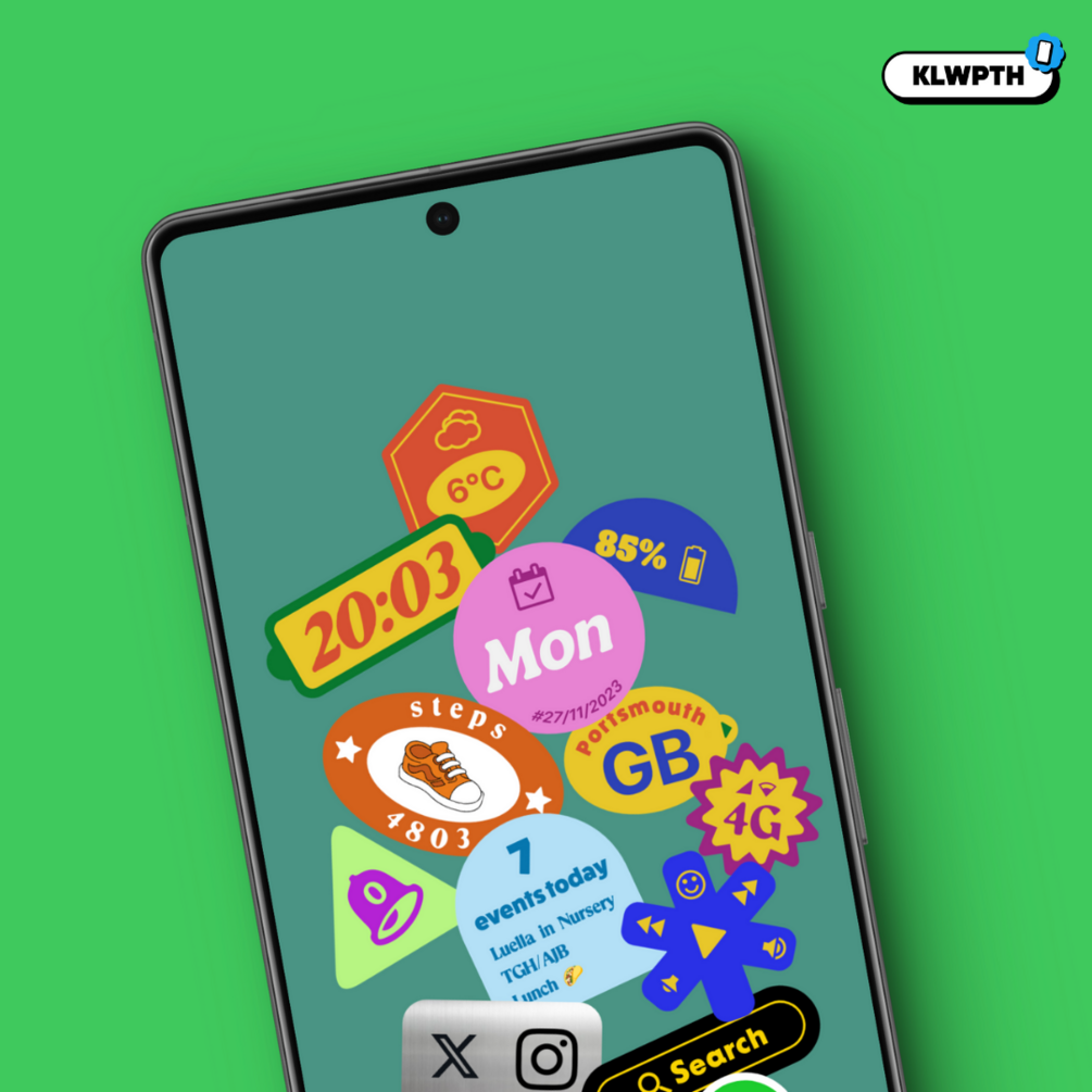 This setup is also part of the KLWPTH - MEGA BUNDLEIntroducing the vibrant and refreshing "Fruit Stickers" phone home screen setup β a delightful blend of functionality and aesthetics! Immerse yourself in a fruity wonderland as your phone comes to life with a myriad of colourful and juicy fruit stickers that serve as interactive widgets.