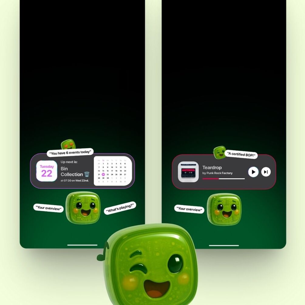 A simple, clean 1-page homescreen setup with an assistant built in, ready to tell you about your day, what you have on, and what's playing!